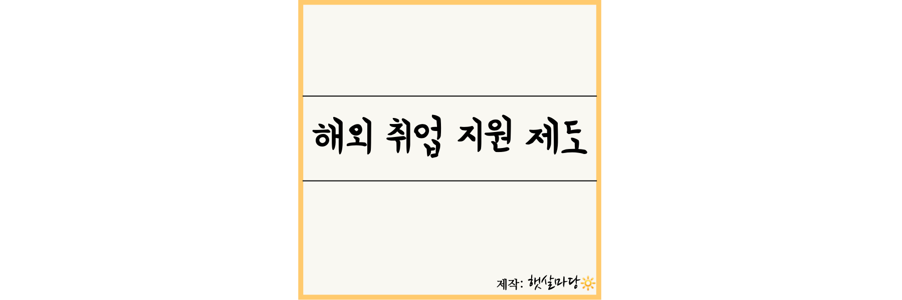 한국산업인력공단은 또한 양질의 해외 일자리를 발굴하고, 해외 취업을 희망하는 사람과 해외 기업을 연계하여 취업을 알선해 주고 있습니다. 해외 취업 알선 제도의 지원대상은 만 34세 이하로 해외 취업에 필요한 합법적인 비자 발급이 가능한 사람입니다. 해외 취업과 관련된 상담, 일자리 알선, 서류 심사 및 면접 과정 등 안내, 근로 계약 체결 안내, 출국 지원 등 일련의 절차를 체계적으로 지원받으실 수 있습니다.